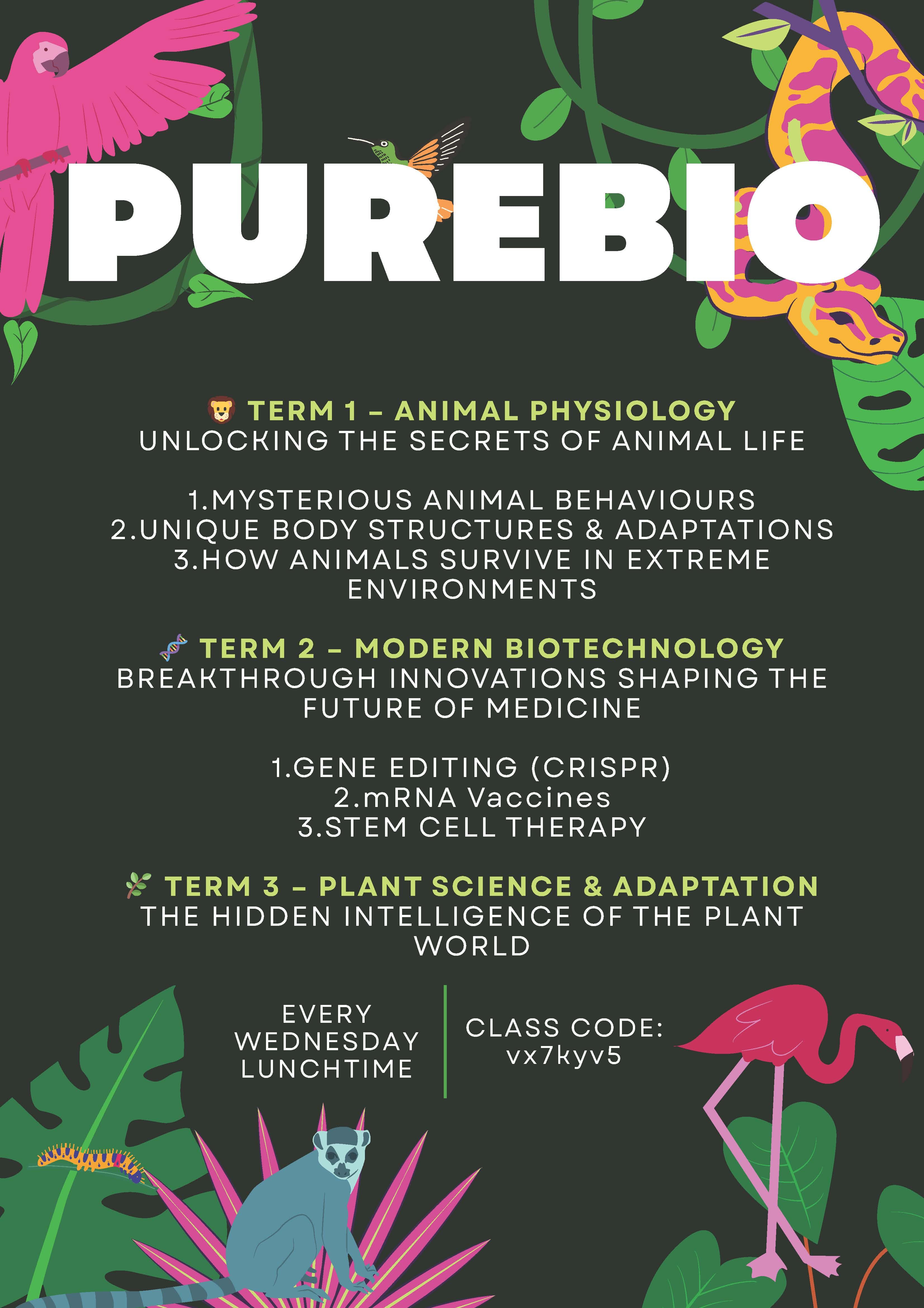 PureBio is a new biology club at TGS. Through multiple hands-on experiments (eg, observing onion skin cells and stomata, dissecting kidneys), exploring historical stories of scientific discoveries, and games, we aim to explore biology in a fun way that connects textbook knowledge with real-life applications. Our sessions primarily focus on botany and human physiology, and we broaden our focus by adding group investigations and exploring cutting-edge biotechnology. If you want to make new friends, conduct fun experiments, prepare for a science career, or are simply interested in biology—join PureBio! May the wonders of biology ever inspire you!